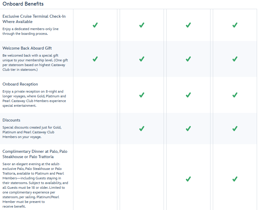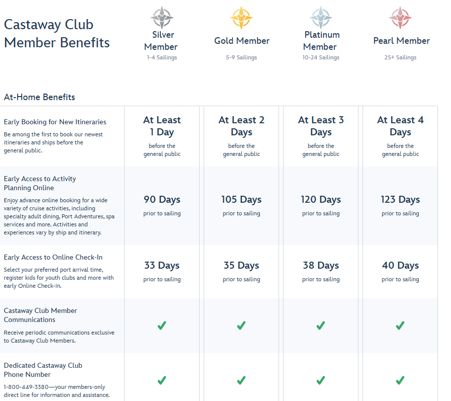 All Platinum, Gold and Silver Castaway Club Member benefits