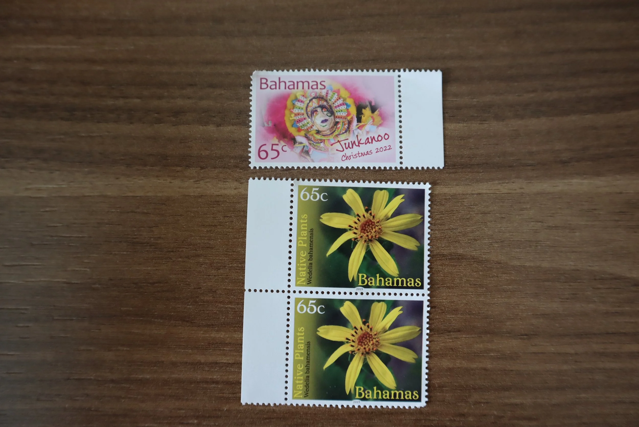 Go to Guest Services before getting off the ship and ask to purchase stamps as they need to be Bahamian Stamps